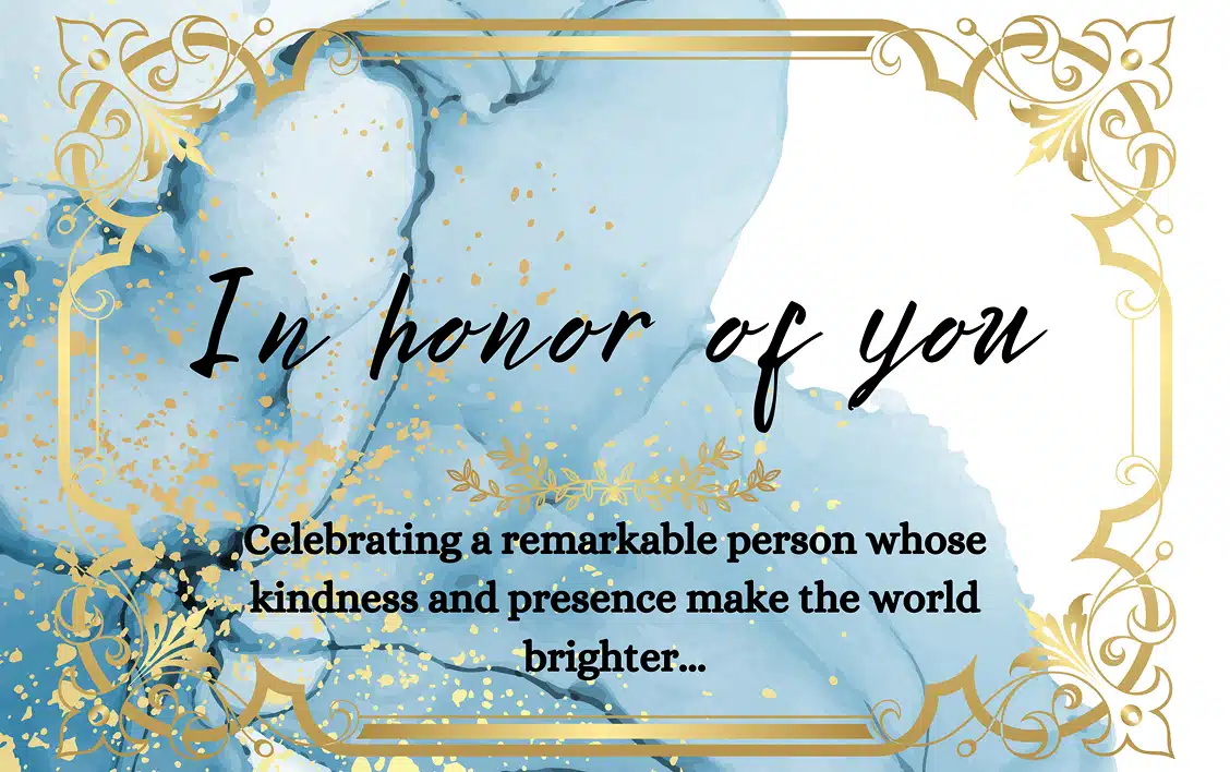 Celebrate someone special by making a donation to First Light and sending an "In Honor Of" greeting card. This meaningful gesture supports our mission while recognizing the achievements or kindness of someone you admire.